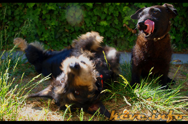 Sikerült észrevétlenül (anélkül, hogy Lizi vagy Totó az ujjamat nyalná, ölembe ülne, vakargatásért könyörögne) néhány fotót készítenem az ebekről. Az egyik legjobbat megosztom.