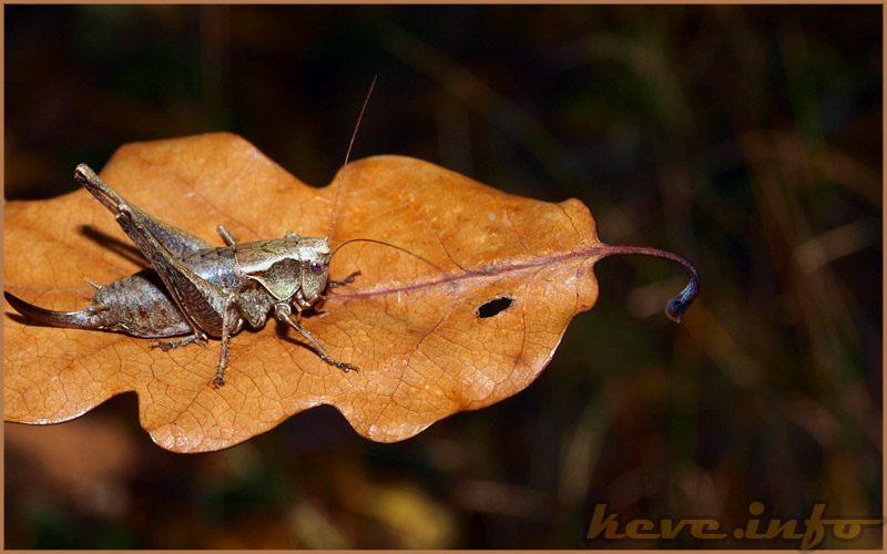 Ez a fura szerzet a szemölcsevő szöcske (Decticus verrucivorus). Önagyságát beidomítottam (najó, le volt lassulva, csak azért tudtam rácsalogatni a levélre), és jól lefényképeztem!