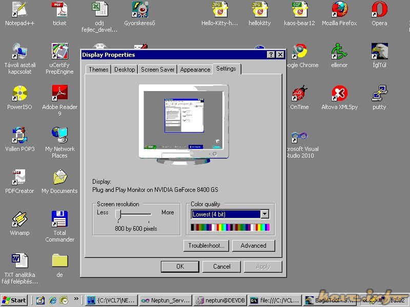 A Windows XP átváltott 800×600 -as felbontásba, és 4 bites (32 szín) színmélységbe!!!