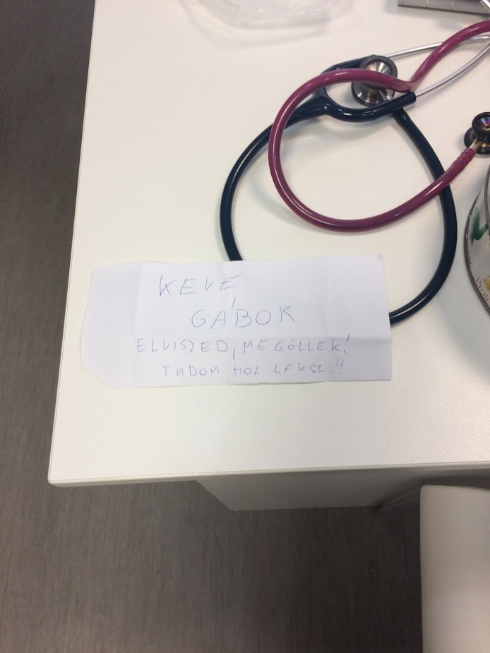 Ahogy hármasban beléptünk a dokihoz, rögtön vigyorogva fogadtak. Először nem is értettük, hogy mire fel ez a nagy boldogság, amíg meg nem láttuk az asztalon a papírfecnimet.